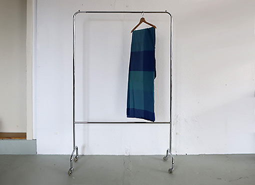Ursprünglich als Paravent im Spitalbereich genutzt, wurde der rollbare Stahlrohrrahmen zur Garderobe umfunktioniert. Hergestellt wurde der Rahmen von Hess in Dübendorf, einer Firma die seit den 1960er Jahren auf die Fertigung hochwertiger Liegen, Trolleys usw. im Medizinalbereich spezialisiert ist und mittlerweile in Glarus produziert. Masse: 172x102cm. VERKAUFT