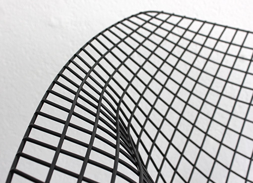 Der hier angebotenen Sessel stammt aus einer frühen Produktionsphase in dünnem, schwarz lackierten Draht mit Metallschienenverbindung, zudem sind die Kufen leicht gebogen, um so einen besseren Stand zu garantieren. Sitzkissen aus späterer Produktion mit leichten Abnutzungsspuren. VERKAUFT