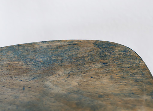 Der hier angebotene Stuhl stammt aus dem Besitz einer bekannten Schweizer Architektin. In ihrem Eigenheim aus den 1970er Jahren, waren sämtliche Türen Enzianblau gefasst, was wohl den Anlass dazu gab, den ursprünglich naturfarbenen Stuhl entsprechend blau einzufärben. Der Stuhl ist stabil und benutzbar, aber im ursprünglichen Zustand belassen. VERKAUFT