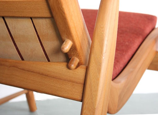 Für sein eigenes Ferienhaus in Ronco entwarf Jacob Müller in den vierziger Jahren einen verstellbaren Armlehnsessel. Wie so oft bei Müllers Entwürfen entpuppt sich der zunächst klassisch anmutende Sessel als technisch innovativ. So baut Müller zwar das Untergestellnentsprechend den traditionellen, geschnitzten Tessiner Stühlen aus gesteckten Massivholzelementen, die Sitzschale ist dagegen mit zwei Millimeter dicken Aviatiksperrholzlamellen versehen. Dadurch bleibt der Sessel extrem leicht und dank dem elastischen Material ist nur eine dünne Polsterauflage nötig. Der Entwurf ging 1950 in Serie und wurde von der Wohnhilfe in Zürich vertrieben.