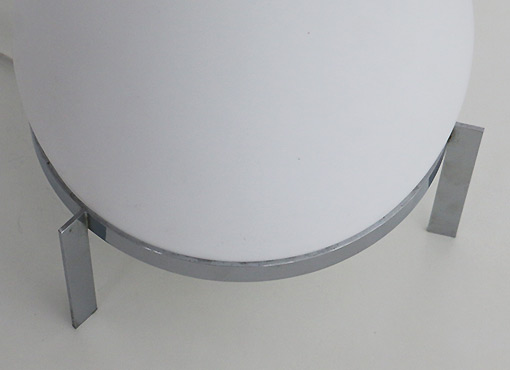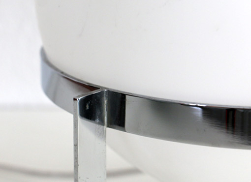 Bekannt ist Hablützel vor allem für seine Grafik und seine Fotografie, mit der er ab den 1950er Jahre überaus erfolgreich die Werbetrommel für das moderne Wohnen rührte. Nicht zuletzt dank seinen Bemühungen fanden etwa Thut, Haussmann und Eichenberger bei Teo Jakob in Bern ihre erste Plattform. Als Entwerfer selbst ist Hablützel nur selten in Erscheinung getreten. Und doch ist ihm mit der Kugelleuchte „La Ligne“ ein Schweizer Klassiker gelungen. Dabei ging es ihm eigentlich um das Recycling nicht mehr gebrauchter Kugelleuchten, indem er die Deckenaufhängung entfernte und die Glaskugeln auf ein metallenes Dreibein stellte. Letzteres stellte übrigens kein geringerer als Bernhard Luginbühl her. Später wurde die Leuchte von Swiss Lights International und andern Herstellern in Serie und verschiedenen Grössen produziert. Höhe ca 27cm. VERKAUFT