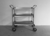 Peter Holmblad – der nachmalige Besitzer und Firmenchef von Stelton versuchte in den sechziger Jahren mehrmals seinen Stiefvater Arne Jacobsen für Entwurfsarbeiten zu gewinnen. Angeblich konnte sich Jacobsen erst dazu durchringen, nachdem ihm Holmblad eigene Entwürfe gezeigt hatte, die Jacobsen offenbar für so schlecht hielt, dass er selbst Kaffeekannen, Eisbehälter, Streuer und so weiter zu zeichnen begann. Drei Jahre später, 1967, wurden diese Entwürfe unter dem Namen Cylinda-Line von Stelton auf den Markt gebracht und gewannen im selben Jahr den dänischen ID-Preis. Im Gegensatz zur aktuell von Stelton hergestellten Version kommt die frühere Ausführung der Pfeffermühle ganz ohne Kunststoffteile und Keramikmahlwerk aus und ist ganz aus gebürstetem Edelstahl gefertigt. Höhe 13cm. VERKAUFT