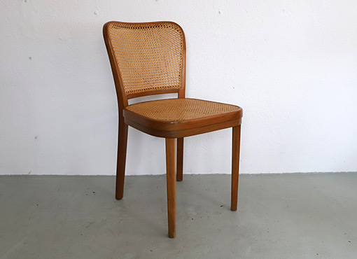 Praktisch zeitgleich mit dem sogenannten Bücherstuhl für das Interieur der Buchhandlung Girsberger schuf Max Ernst Haefeli 1926 gemeinsam mit Ernst Kadler-Vögeli, dem Entwurfsleiter bei Horgen-Glarus auch Esszimmerstühle mit Sitz und Rücken aus Jonc. Diese ersten Typenmöbel der Schweiz waren alles andere als ein Serienprodukte. Die aufwändige Joncbespannung wurde ebenso in Hand ausgeführt wie ein Grossteil der Bugholzteile. Modern war aber die Formgebung, die auf das wesentliche reduziert war und die Konstruktion offenlegte. Ein besonderer Kniff war die doppelte Zarge, die bei einer allfälligen Neubespannung des Sitzes demontiert werden konnte und so die Arbeit vereinfachte. Der im Vergleich zu den fast gleichzeitig entstandenen Stahlrohrmöbeln am Bauhaus vergleichsweise zurückhaltende Entwurf ist trotz beschränkter Produktion in Kleinserie auf den frühen Interieurs der Schweizer Moderne immer wieder zu sehen. So etwa bei den Rotach-Häusern oder Siedlung Neubühl. VERKAUFT