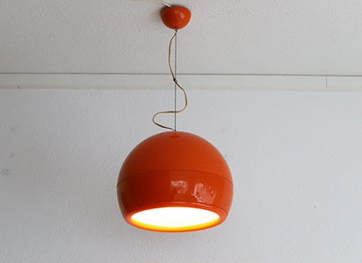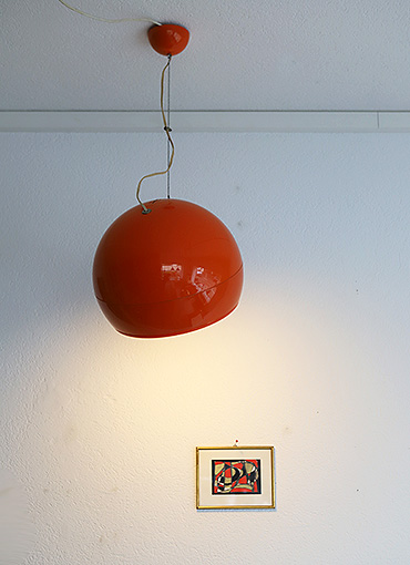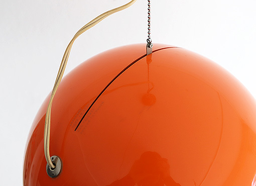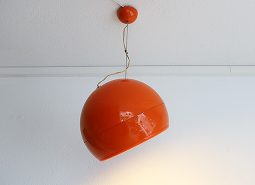 So epochemachend ihre Leuchtenentwürfe waren, so wenig ist über das Studio Tetrarch bekannt, wie sich die vier Architekt:innen Adelaide Bonati, Carla Fiederspiel, Silvion Bonatti und Enrico de Munari augenzwinkernd nannten. Neben der bekannten, bis heute hergestellten Pistillo Leuchte, gehört die Pallade zu ihren erfolgreichsten Schöpfungen, die in den 1960er und 70er Jahren in zahlreichen Publikationen abgebildet wurde. Hersteller war Artemide, wo durchgefärbter, glänzender ABS-Kunststoff für Möbel und Leuchten eingesetzt wurde, die sich fast allesamt zu Ikonen des italienischen Bel Designs entwickelten. Der Clou der Pallade Leuchte besteht ihn ihrer für eine Pendelleuchte ungewöhnlichen Möglichkeit, den Schirm zu kippen und so das Licht in verschiedene Richtungen zu lenken. Eine Perlenkette, wie sie im Sanitärbereich verwendet wird, ist mit einer Halterung am Schirm verbunden, die sich verschieben lässt und so den „Blickwinkel“ der Leuchte einstellt. Ein satiniertes Glas sorgt für eine blendfreie Streuung des Lichts. Alle Teile sind original erhalten. Kleiner Haarriss am Schirm. ø ca. 40cm. CHF 450.–