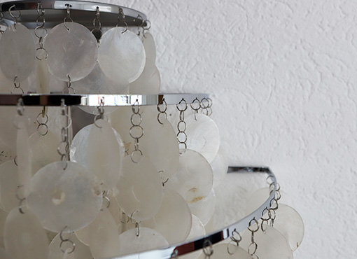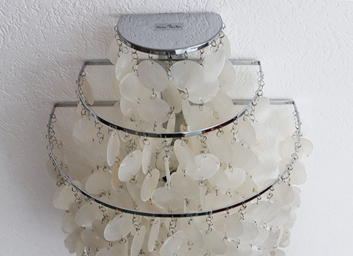 Ab den 1960er Jahren wurde die Muschelleuchten Joe Lüber in Basel produziert. Zur Zusammenarbeit mit der Firma kam es, nachdem Verner Panton seinen Wohnort nach Basel verlegte hatte, um mit Fehlbaums seinen Kunststofffreischwinger für die Firma Herman Miller Collection zur Serienreife zu bringen. Ab Mitte der sechziger Jahre wurden die Lampen in verschiedensten Ausführungen hergestellt und unter anderem bei Möbel Rösch in Basel verkauft, wo ein eigener Ausstellungsraum für die verschiedenen Modelle eingerichtet wurde. Nachdem die erfolgreichen Leuchten für längere Zeit nicht mehr produziert wurden, übernahm Verpan zusammen mit andern Entwürfen Pantons die Herstellung. Die hier angebotene Fun1WM wurde erst im Dezember letzten Jahres gekauft und ist damit praktisch neuwertig. Breite 40cm, Tiefe ca. 23cm. CHF 550.–