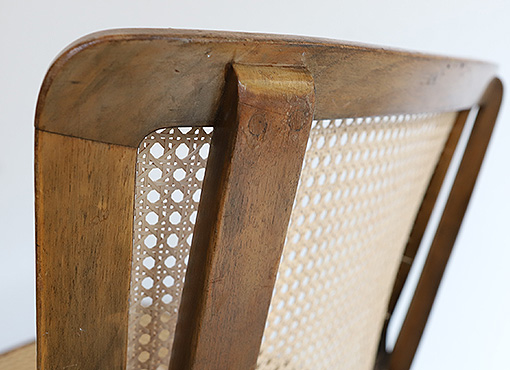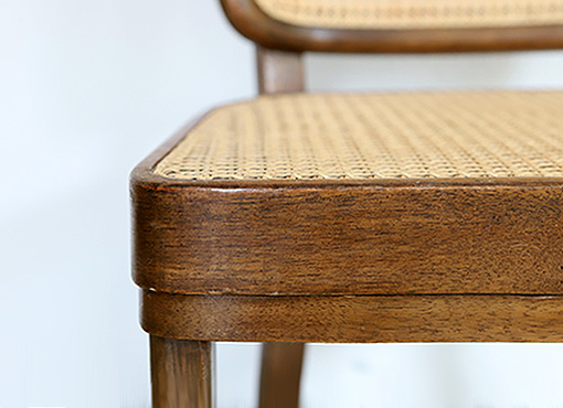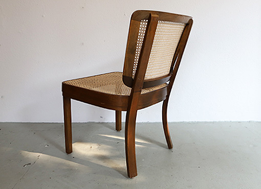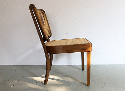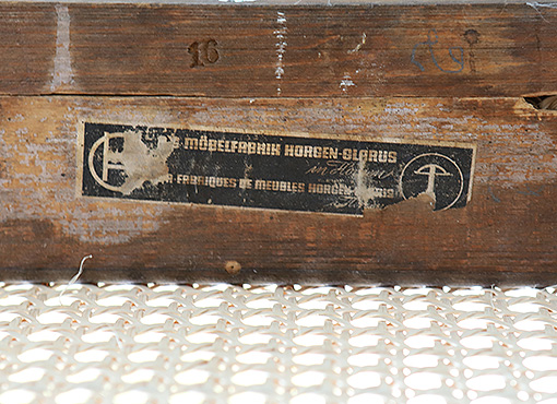 Den sogenannten Bücherstuhl oder auch Modell „Bücherstube“ schuf Max Ernst Haefeli 1926 für das von ihm entworfene Interieur der Buchhandlung Girsberger in Zürich an der Kirchgasse. Gemeinsam mit Ernst Kadler-Vögeli, dem Entwurfsleiter bei Horgen-Glarus, führte Haefeli mit diesem Modell die Schweizer Sitzmöbelproduktion in die Moderne. Dabei war das erste Typenmöbel der Schweiz alles andere als ein Serienprodukt. Die aufwändige Joncbespannung wurde ebenso in Hand ausgeführt wie ein Grossteil der Bugholzteile. Modern war aber die Formgebung, die auf das wesentliche reduziert war und die Konstruktion offenlegte. Ein besonderer Kniff war die doppelte Zarge, die bei einer allfälligen Neubespannung des Sitzes demontiert werden konnte und so die Arbeit vereinfachte. Der im Vergleich zu den fast gleichzeitig entstandenen Stahlrohrmöbeln am Bauhaus vergleichsweise zurückhaltende Entwurf Haefelis schaffte es nicht nur auf das Umschlagblatt von Adolf Gustav Schnecks Standartwerk „Der Stuhl“, sondern diente auch als Besucherstuhl im Kunstmuseum Basel von 1938. Aus dem Originalbestand des Letzteren stammt auch das hier angebotene, neu beflochtene Exemplar. CHF 1200.–