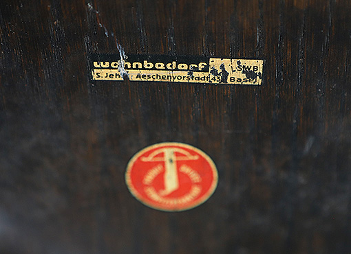Mit dem Einpunktstuhl gelingt dem am Bauhaus ausgebildeten Hans Bellmann eine Ikone des Schweizer Nachkriegdesigns und einer der innovativsten Stühle seiner Zeit. Die als freie Form ausgesägte Öffnung im Übergang von Rücken- und Sitzfläche dient einerseits als Griffloch und führt andererseits zu einer leicht elastischen Rückenlehne. Neben diesem einfachen aber wirkungsvollen Eingriff besteht die eigentliche Leistung Bellmanns in der Verbindung der Holzschale mit dem Metalluntergestell: Die Schale liegt auf vier Metallhöckern, gegen die sie mit Hilfe einer einzigen Schraube in der Sitzmitte gedrückt wird. Hergestellt wurde der 1951/52 entworfene Stuhl von Horgen-Glarus. Die hier angebotenen Stühle in schwarz lackierter Eiche wurden in den 1950er Jahren bei Wohnbedarf Basel gekauft. Siebzig Jahre des Gebrauchs sind nicht spurlos an den Stühlen vorbeigegangen, so dass der Lack an manchen Stellen licht geworden und der eine oder andere Kratzer geblieben ist. Schön gealtert sind sie allemal. CHF 1200.–/Set
