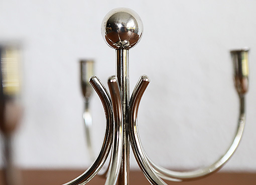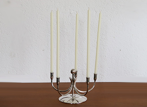 Der fünfarmige, versilberte Kerzenständer stammt aus einer der damals grössten Silberschmieden Dänemarks: Die im 19. Jahrhundert von Carl Cohr auf Jütland gegründete, gleichnamige Firma erlebte in den 1930er Jahren und nach dem Krieg Höhepunkte und stellte eine Vielzahl von Silberobjekten her. Darunter natürlich auch die in Dänemark so populären Kerzenständer für die schmalen Stabkerzen, die für gemütlich-festliche Abende sorgten. Der hier angebotene Kerzenständer stammt aus der Mitte des 20. Jahrhundert und ist in seiner Art zeitlos, verbindet er doch modern funktional anmutende und zurückhaltend dekorative Elemente. ø23cm, Höhe 14cm. CHF 125.– (RESERVIERT)
